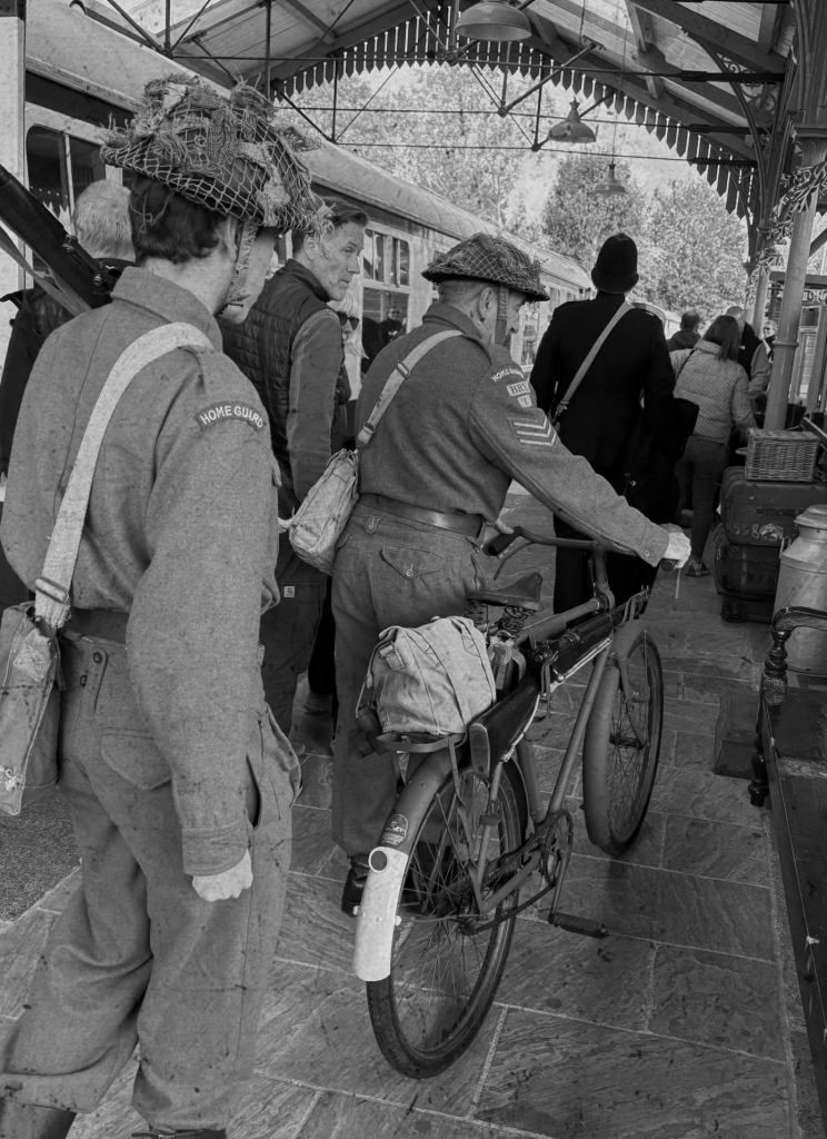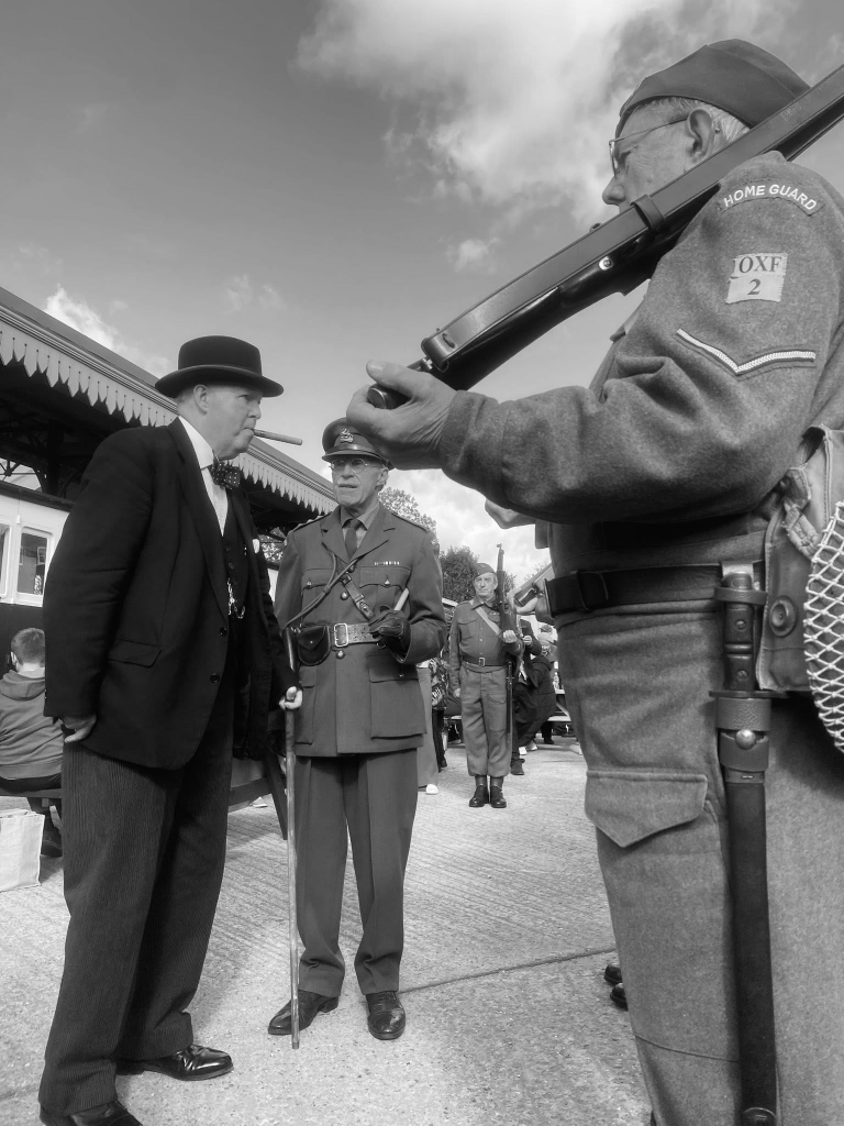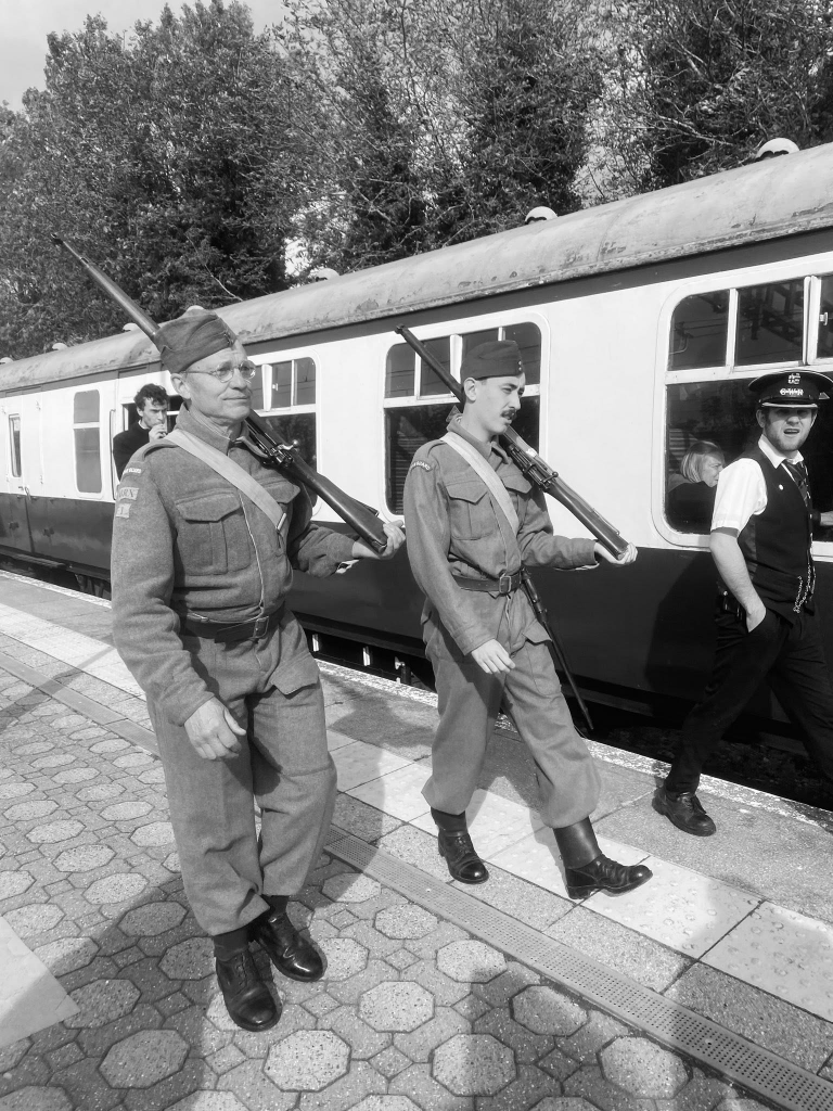 A new addition for 2025 was our presence at the Cholsey ticket office, which was open throughout the weekend as part of the railway’s wider event. Redline Home Guard members were stationed there, standing guard as trains arrived and changing the guard after each service. This proved to be a great spectacle for visitors and photographers alike, capturing the atmosphere of wartime travel and railway life.