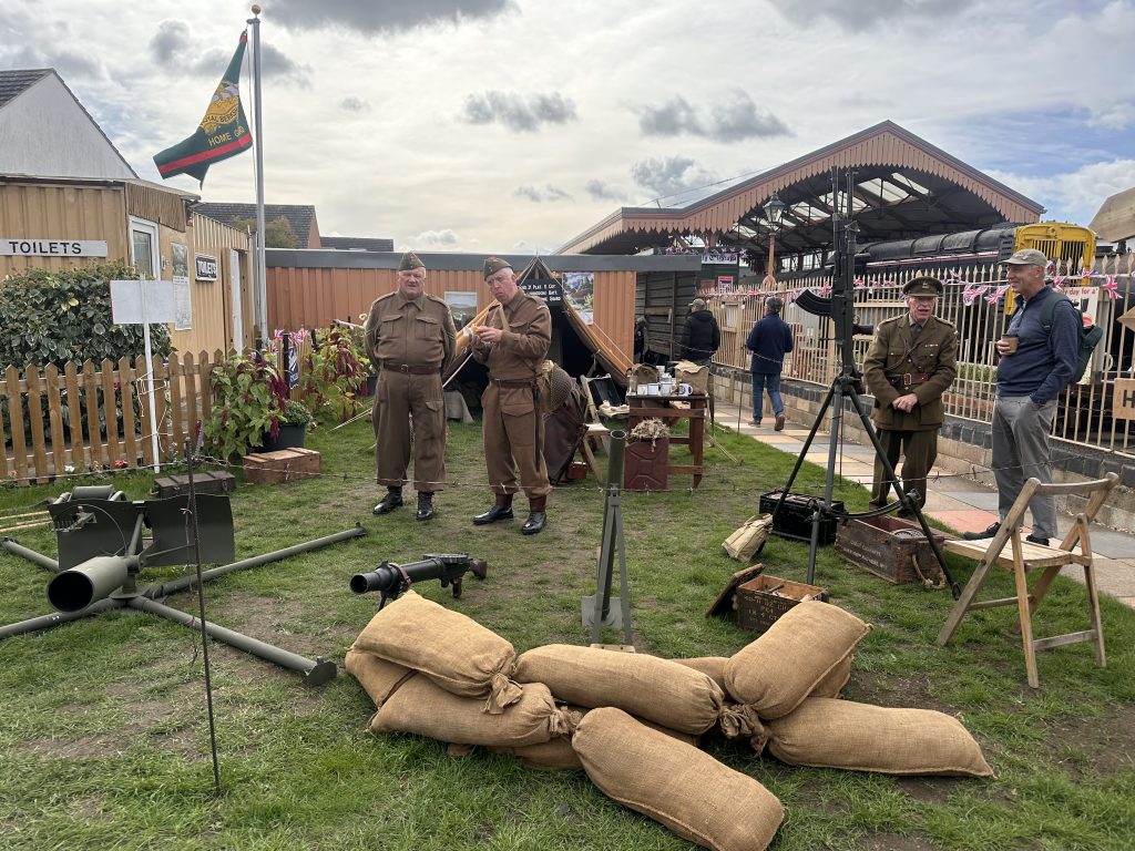 Our field office display was once again the centrepiece of our setup, packed with authentic WWII-era equipment, weapons, and supplies used by the Home Guard during the war. Visitors had the chance to explore a variety of artefacts and learn about the men who stood ready to defend Britain on the Home Front. We also set up a Vickers Machine Gun emplacement on the Guard’s Van in the platform which proved very popular.