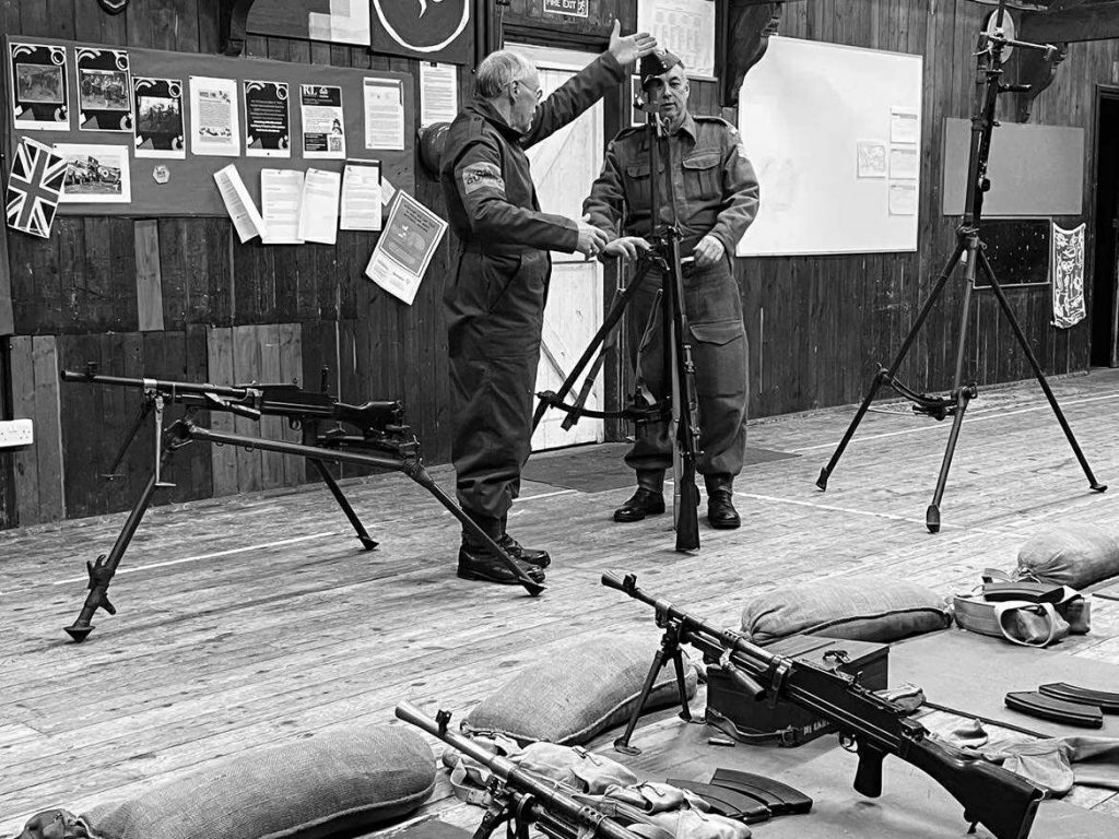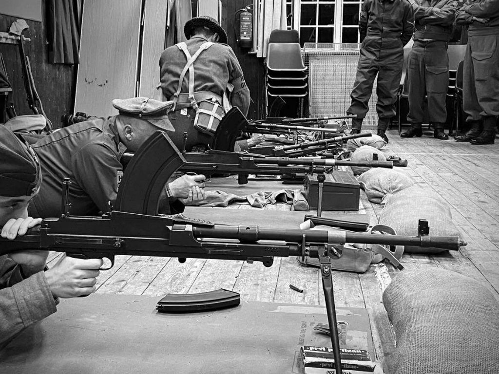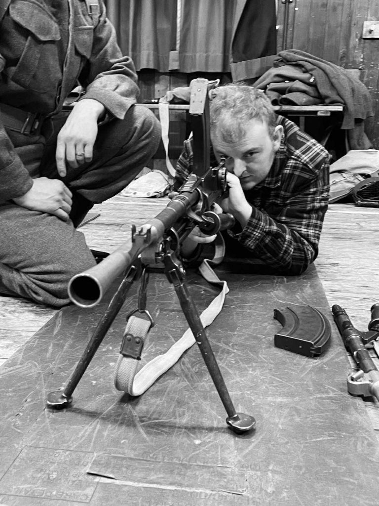 We then returned to the warmth of the platoon HQ where, under the instruction of Sgt Quigley, we continued our ongoing training with the Bren gun. This session focused on the practical elements of operation: loading, firing, unloading, and dealing with stoppages. Drills were practised first as an individual gunner and then as a two-man team, reinforcing both competence and teamwork. We are particularly fortunate as a group to have access to a relatively large number of deactivated Bren guns, allowing everyone plenty of hands-on time during training.