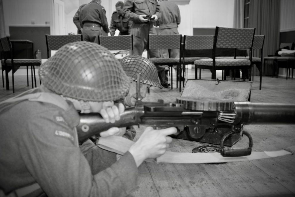 We were back at Ipsden Village Hall for our latest Redline training evening, and this time we were joined by a very special visitor. Our friend Cpl. John Hadfield from Oxfordshire Home Guard LHG kindly came along with his Lewis Gun, giving us a fantastic focus for the night’s training.