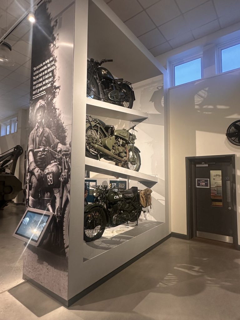 A thoroughly enjoyable morning was spent exploring the galleries, with several exhibits standing out. The full-size reproduction of a tracked vehicle and the landing craft display right at the beginning of the museum immediately caught our attention. Both offered plenty of food for thought, particularly in terms of how vehicles, engineering, and context can be used to strengthen interpretation. It certainly gave us ideas about how we might develop and enhance our own displays looking ahead to 2026.