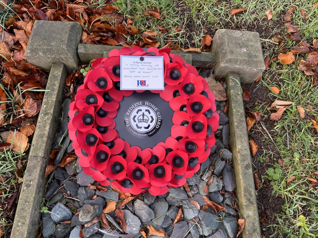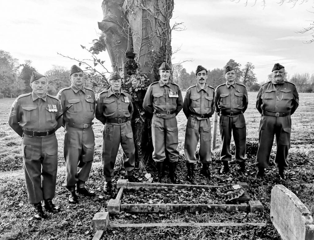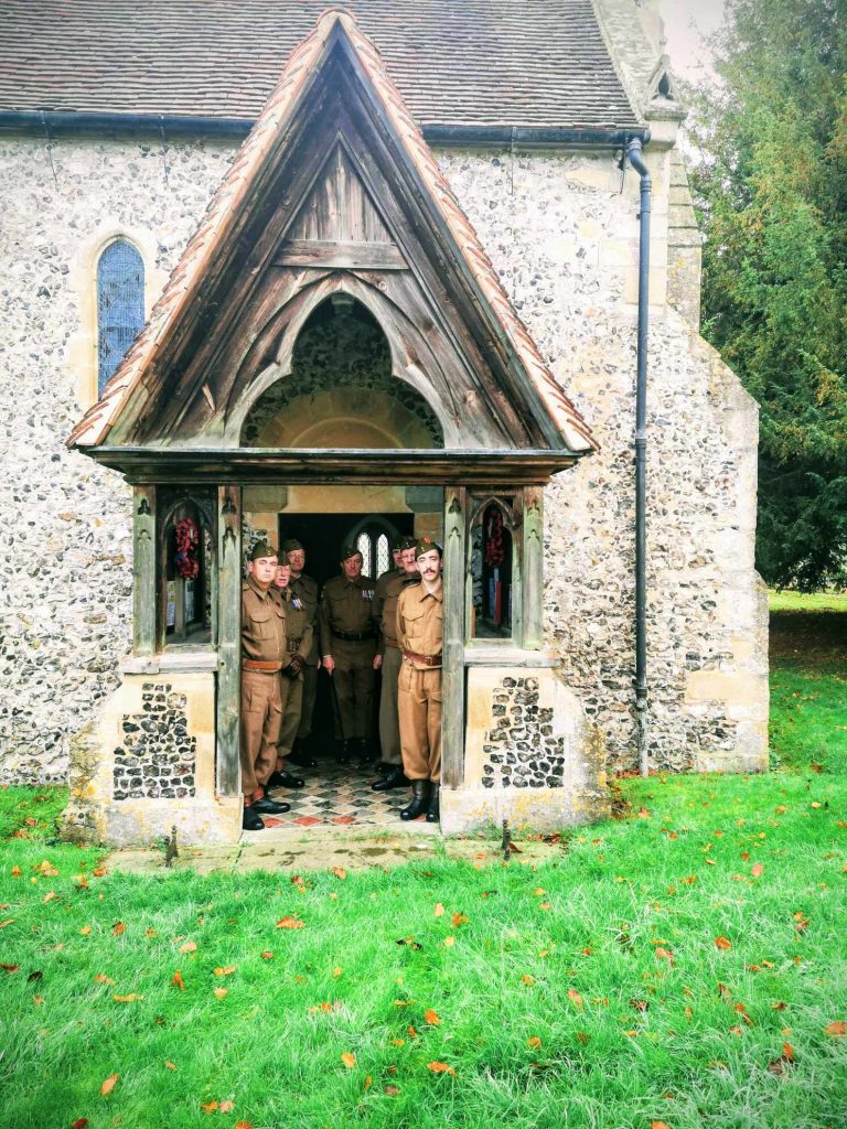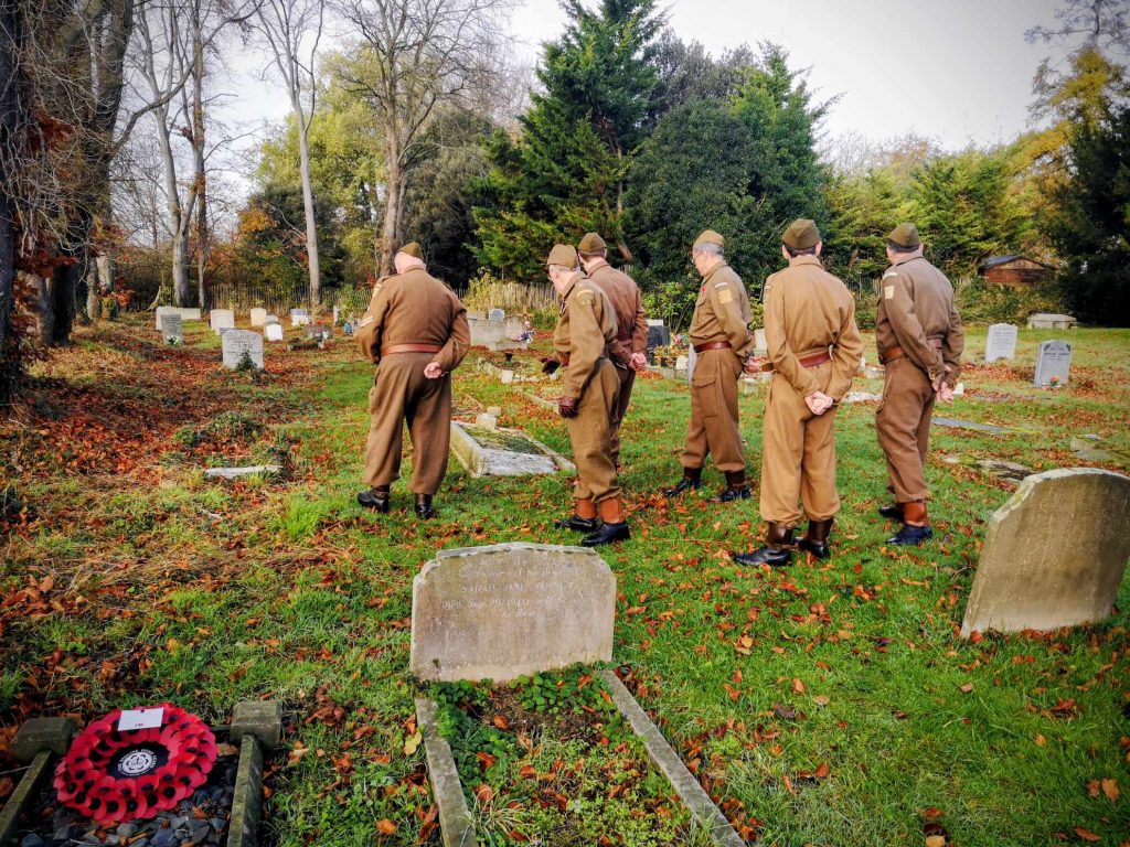 Remembrance Sunday began, as is our custom, with a walk to the grave of Tom Jewitt at St Mary’s Church, Newnham Murren. There, we held a short memorial parade and observed a minute’s silence at his graveside, honouring the ultimate sacrifice he made in 1940 (see his story here).