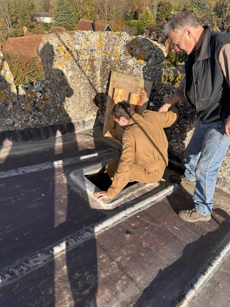 We were also afforded a rare and much-appreciated opportunity to visit and climb the church tower. Several of us braved the rather rickety ascent up onto the leaded roof, which provided an outstanding viewpoint across the surrounding countryside. From that vantage point, it was easy to imagine how local Home Guard volunteers may have kept watch during the war, much as we know they did at nearby Blewbury.